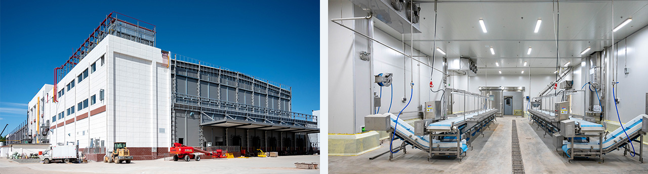 建筑面積17264㎡,層高4.2-18米,存儲(chǔ)噸位為6565噸,四臺(tái)速凍機(jī)配套冷源,采用氨/CO2復(fù)疊制冷,R507制冷,末端冷風(fēng)機(jī),水融霜加電化霜。位于山東省日照市,為綜合性食品加工項(xiàng)目,涵蓋速凍、冷藏、車(chē)間空調(diào)等生產(chǎn)各個(gè)環(huán)節(jié)工藝用冷。
