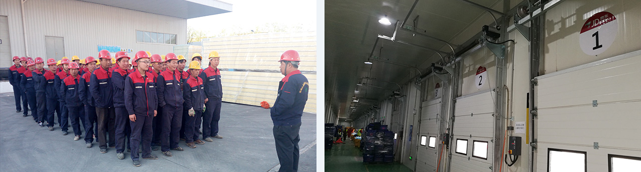 一座一層鋼結(jié)構(gòu)冷庫,面積12880㎡,層高8.1米,存儲噸位21600噸。涵蓋高低溫變溫冷庫、緩沖區(qū)、控溫月臺、以及用于冰袋、冰板速凍的速凍庫。采用氟利昂(R22)制冷系統(tǒng),末端冷風機,自動熱氣融霜。位于北京市通州區(qū)馬駒橋鎮(zhèn)。為京東定制冷庫:E-17-1庫。